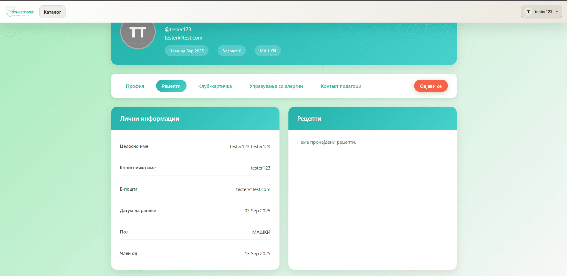 - По одлуката на фармацевтот клиентот ако е одбиен добива шанса поврорно да аплицира, ако е прифатен се прикажани неговите рецепти (ако постојат).