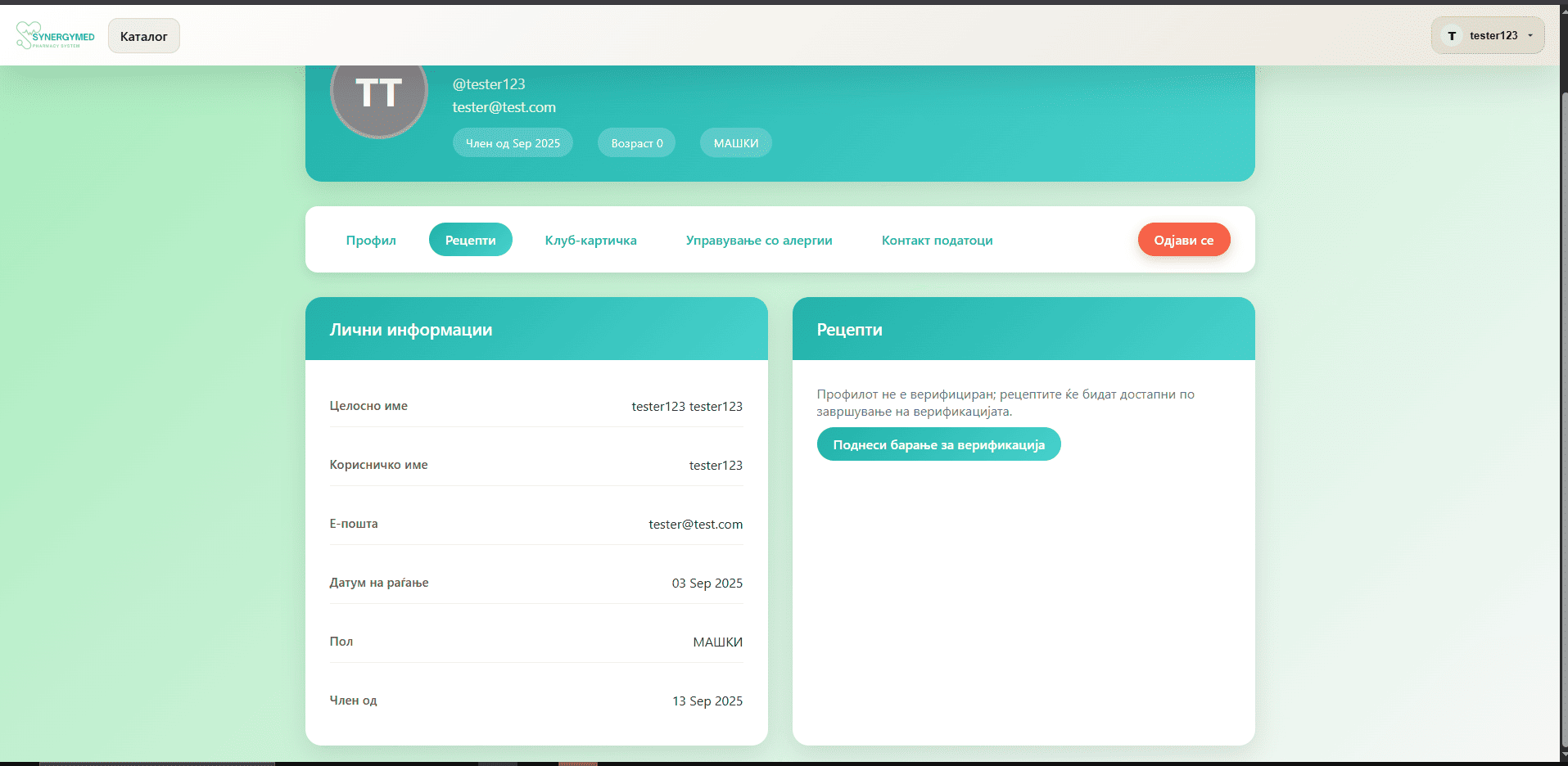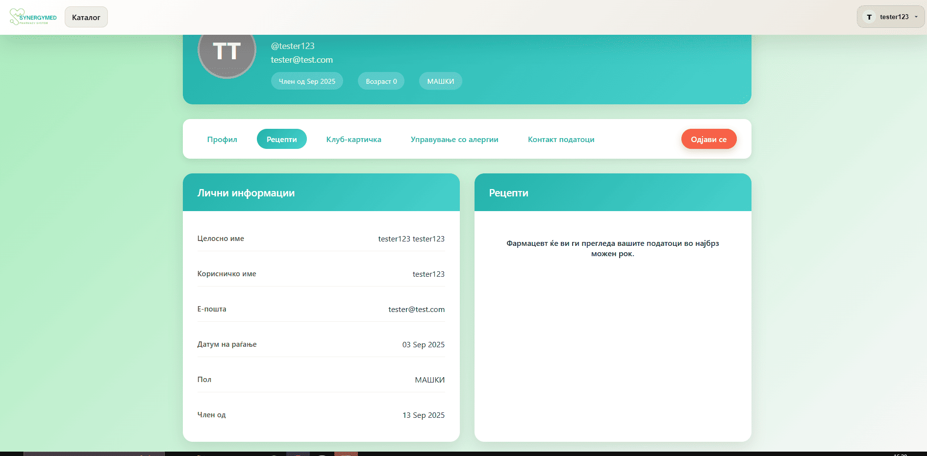- Клиентот го отвара својот профил и навигира кон менито за рецепти.