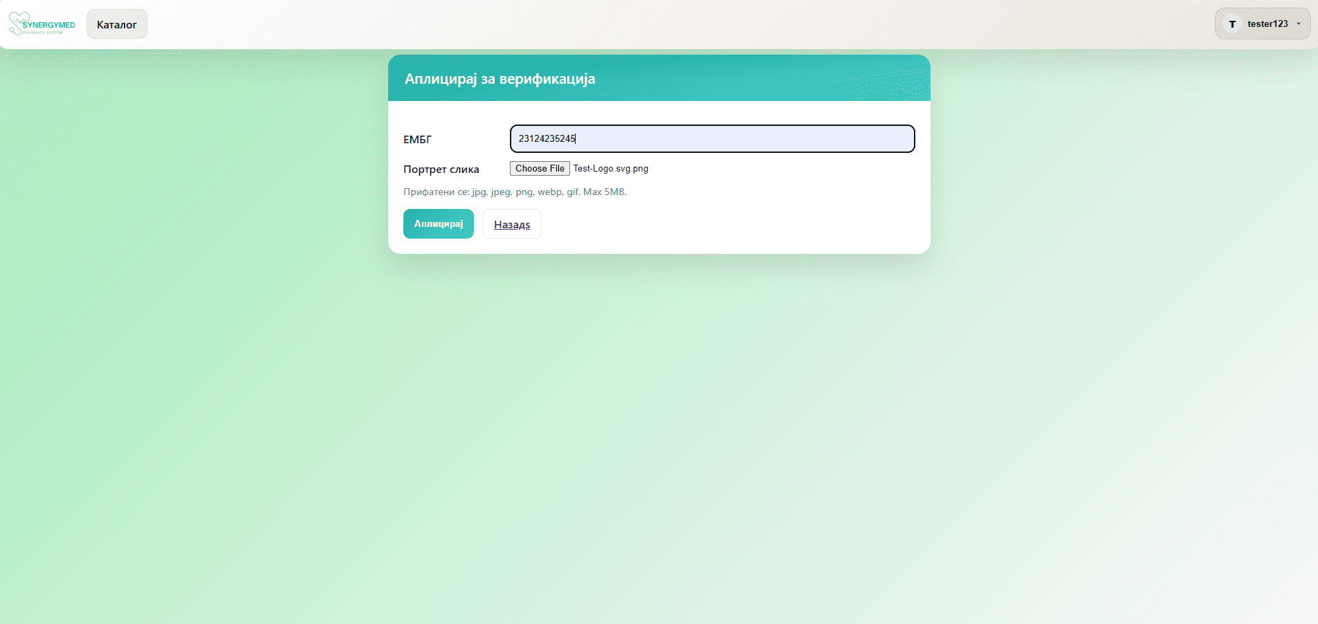 - Клиентот ја прикачува својата слика и го внесува својот ембг.