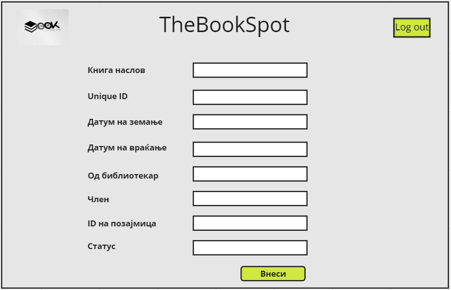 На библиотекарот му се појавува форма во која тој треба да пополни соодветни податоци.