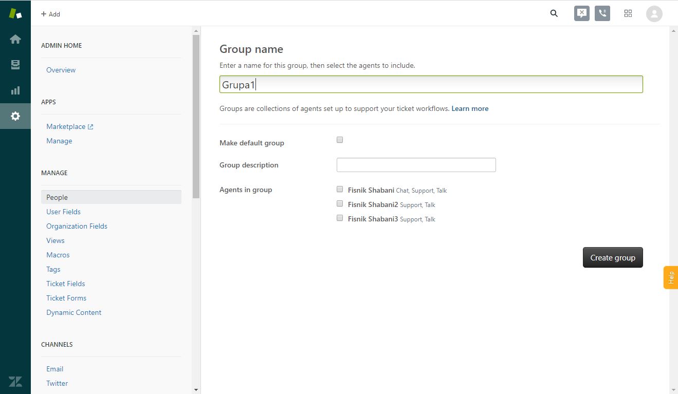 Zendesk креирање на група