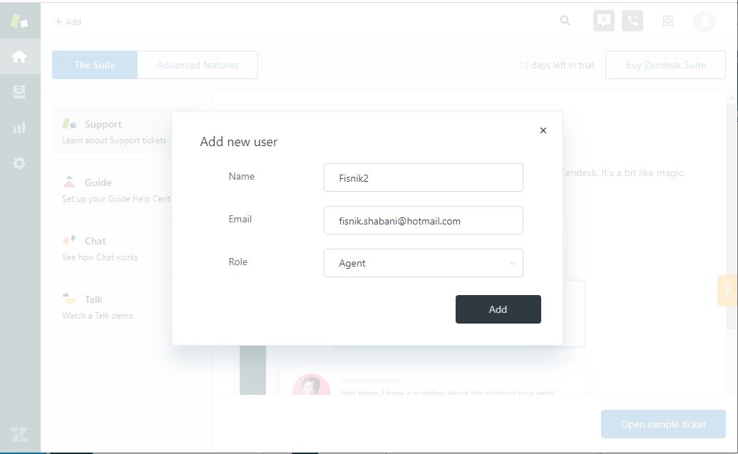 Zendesk додавање нов корисник
