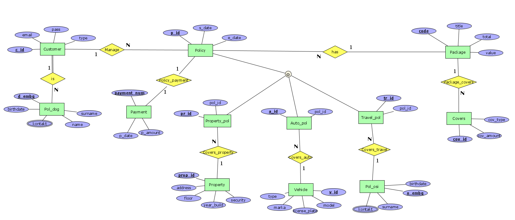 - Covers_travel - претставува 1:N релација помеѓу Pol_osi и Travel_pol каде што еден осигуреник мозе да има повеќе полиси.
