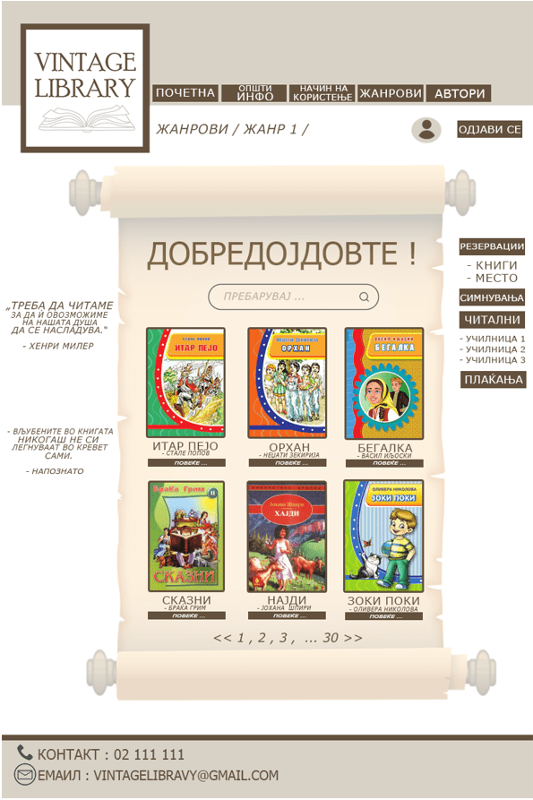 3. Преку мениата навигира до страница на која се прикажуваат повеќе книги, односно навигира до страница на која се прикажуваат книги од жанрот кој го избрал.