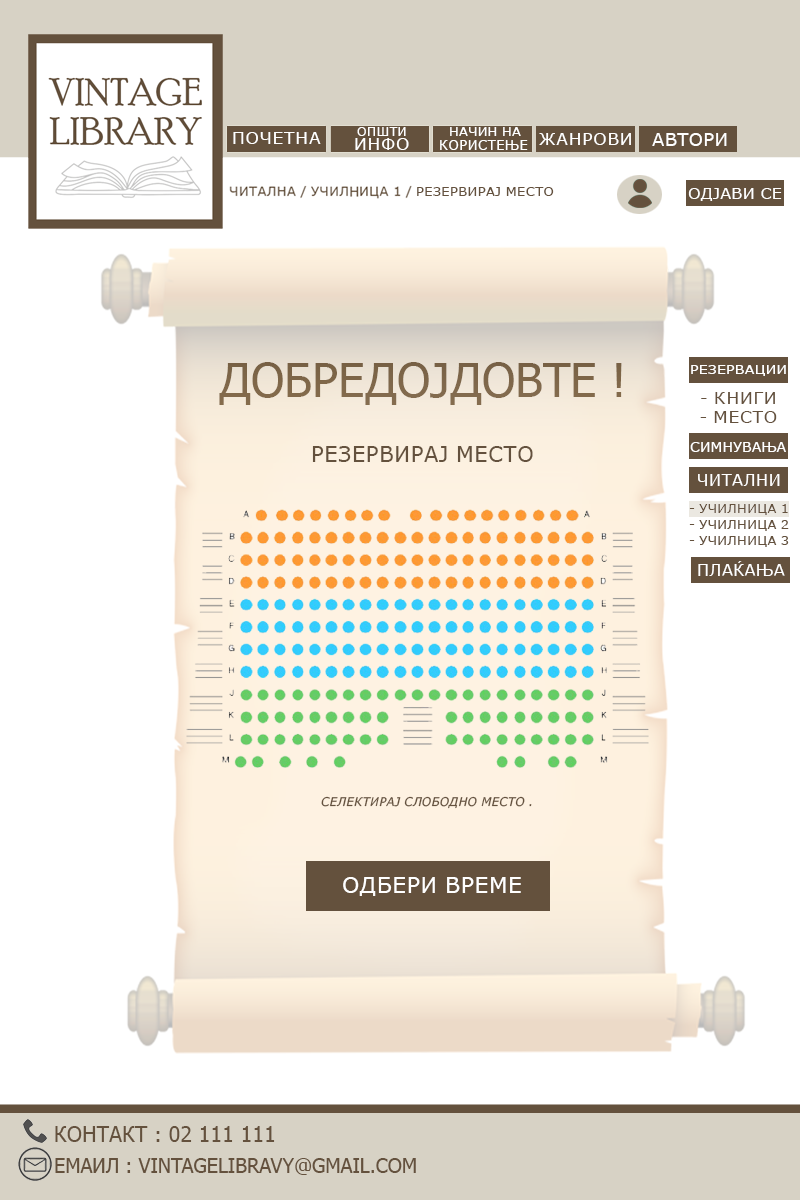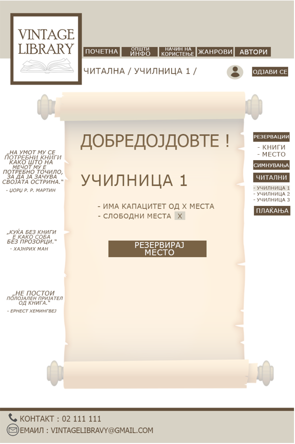 3. Од десна страна клика на копчето „Читални“ и потоа избира една од училниците во која сака да престојува.