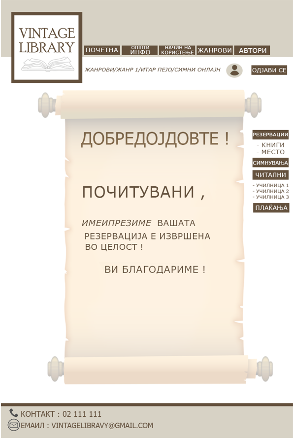 7. По успешното резервирање му се прикажува информација за извршената резервација.