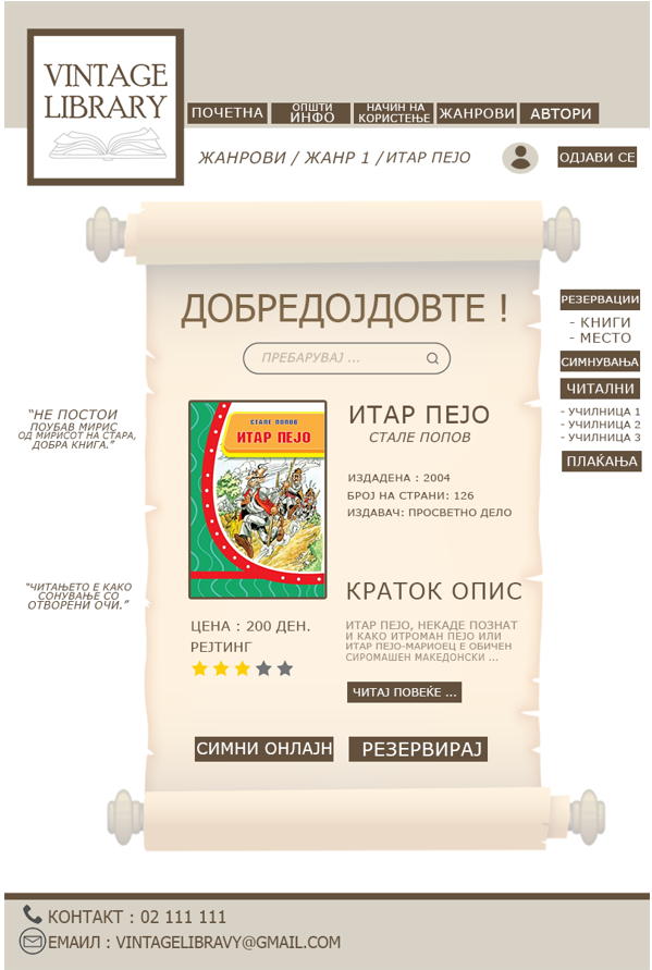 3. Преку мениата навигира до страница на која се прикажуваат повеќе книги, односно навигира до страница на која се прикажуваат книги од жанрот кој го избрал.