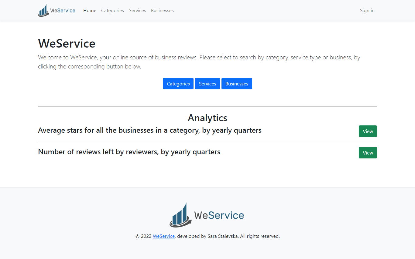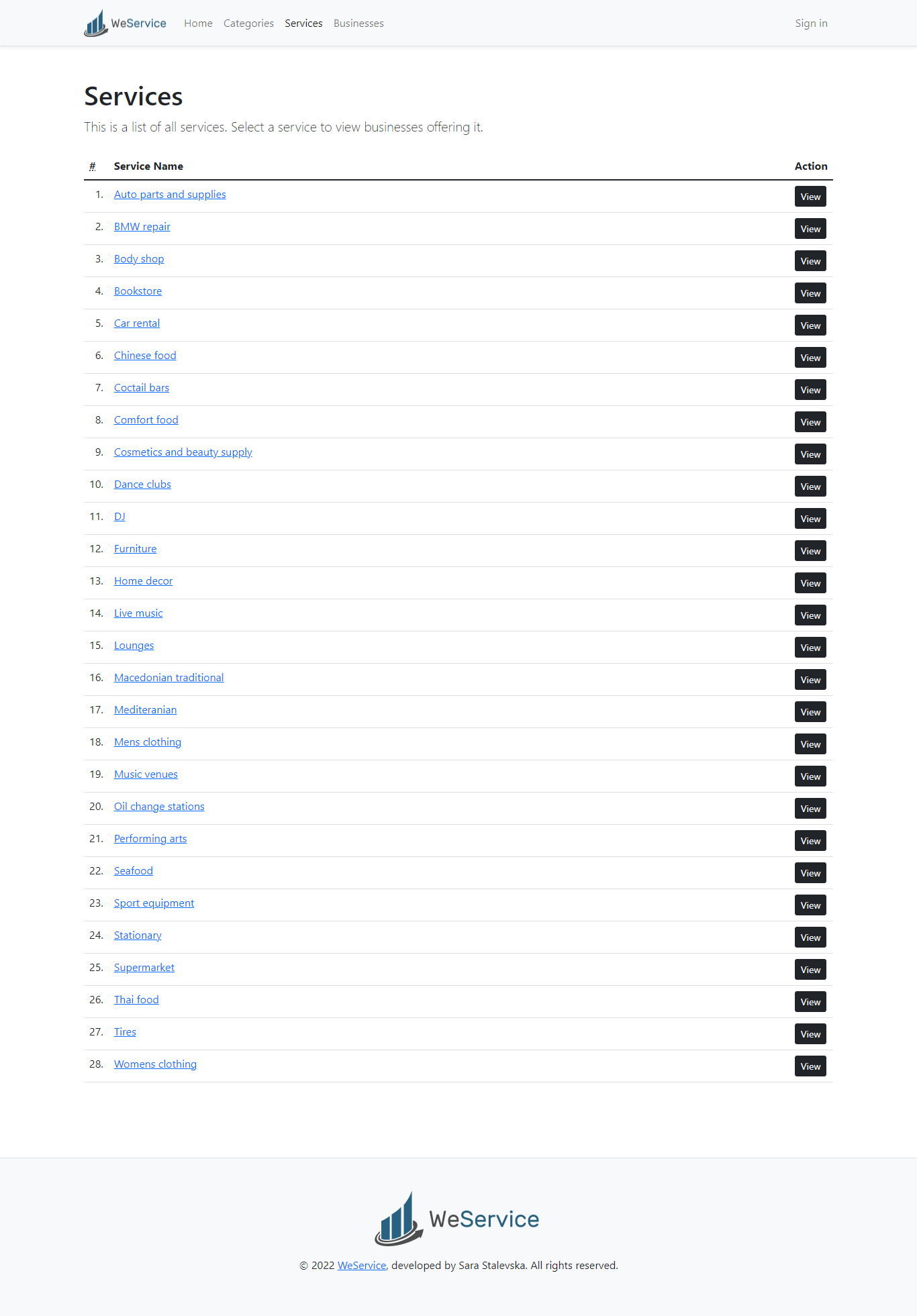 Случај 2: Пребарување според сервиси - Посетител или Reviewer што добива приказ на сите сервиси, избира еден сервис и добива листа од сите бизниси кои го нудат тој сервис.