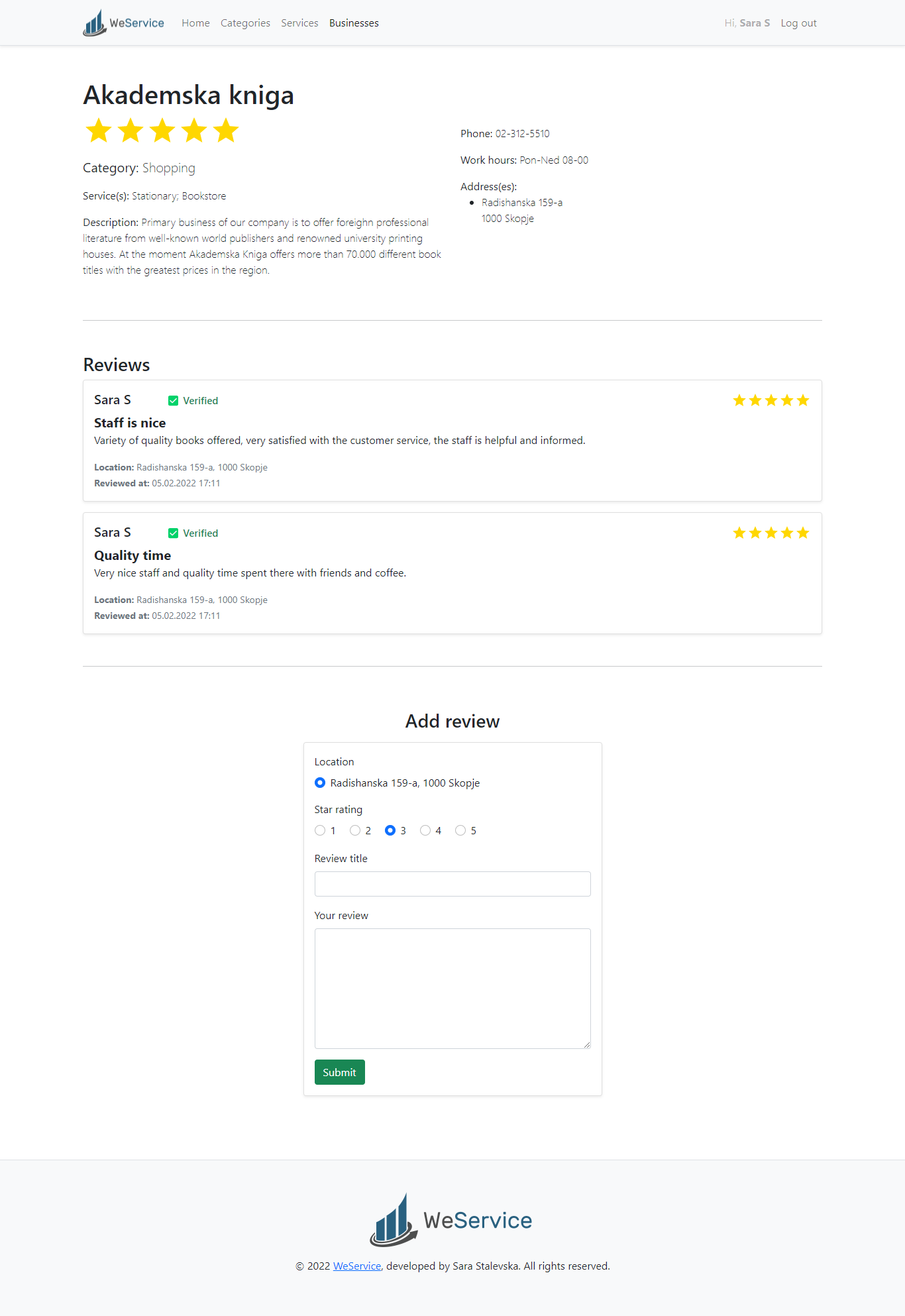Случај 6: Оставање review - Видливо само за најавените посетители, најавениот посетител може да остави review за избраниот бизнис.