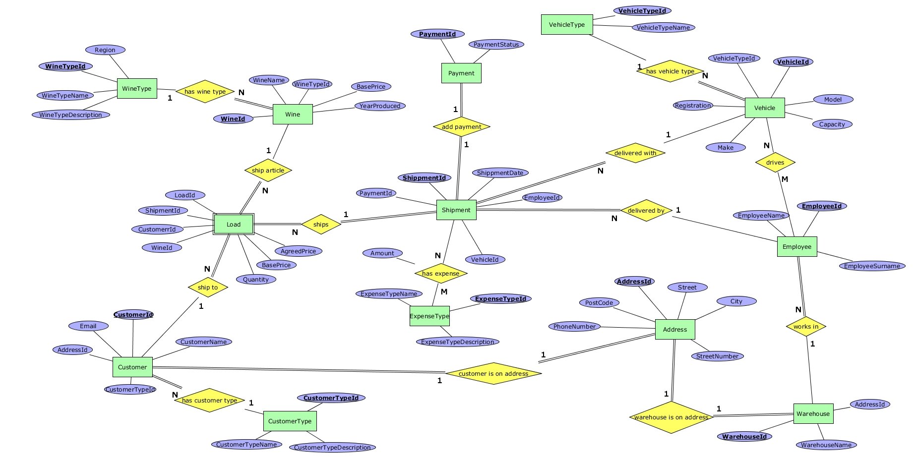 - ship article - 1:N релација помеѓу Wine и Load каде што секој товар мора да содржи вино.
