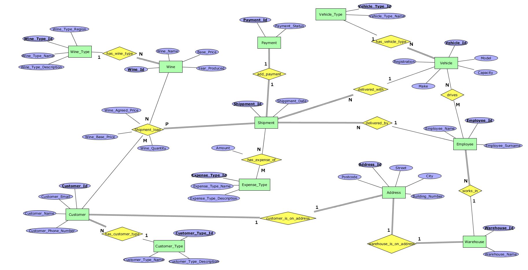 - has_wine_type - 1:N релација помеѓу Wine_Type и Wine каде што секое вино мора да има тип.
