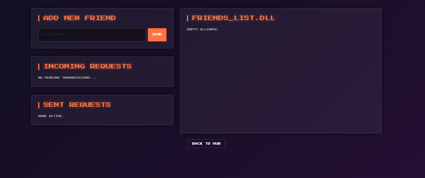 Корисникот може да пребарува други играчи според нивното корисничко име и да им испрати покана за пријателство.