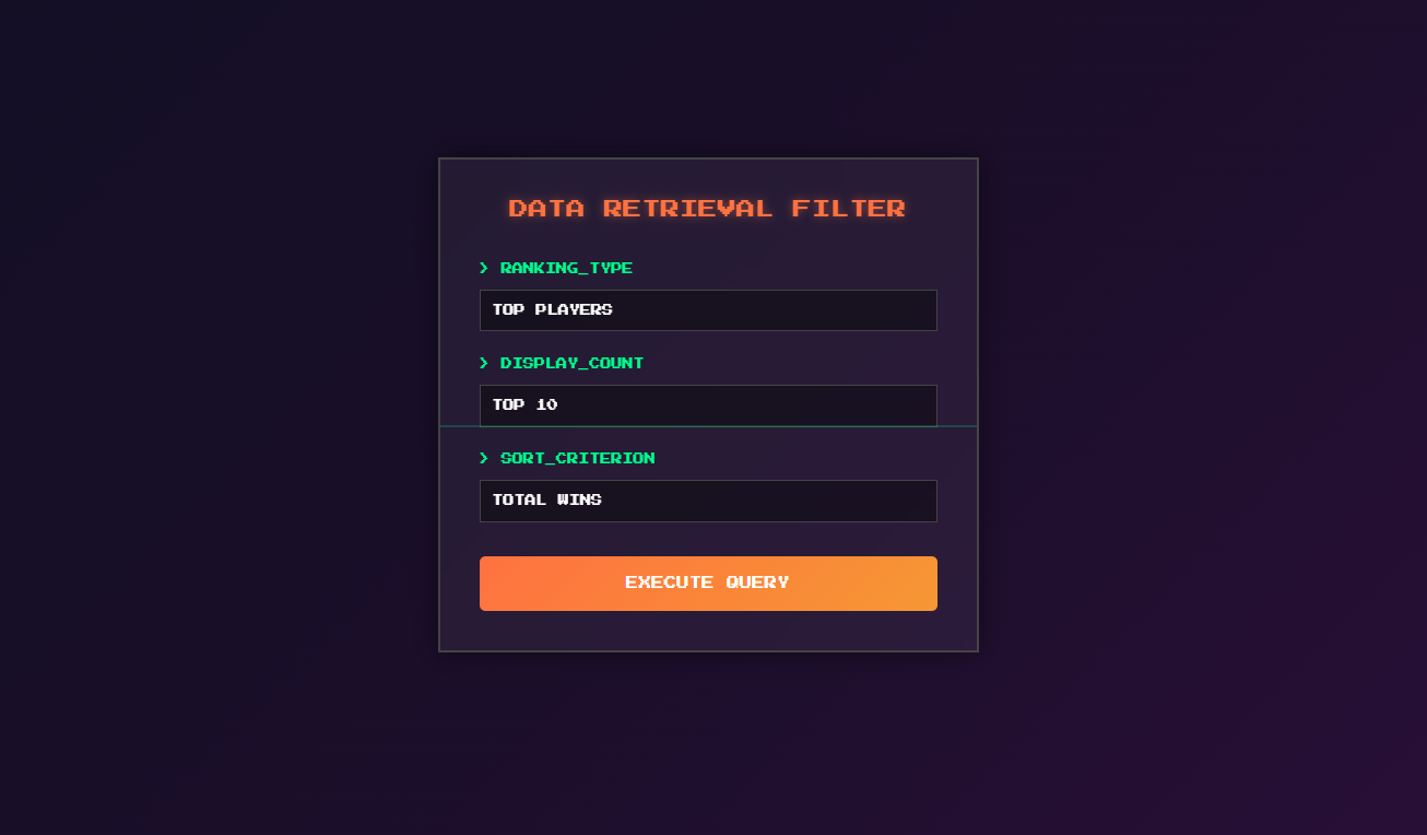 Со избирање на опцијата "Leaderboard" од менито, корисникот добива листа на најдобро рангираните играчи сортирани според бројот на победи.