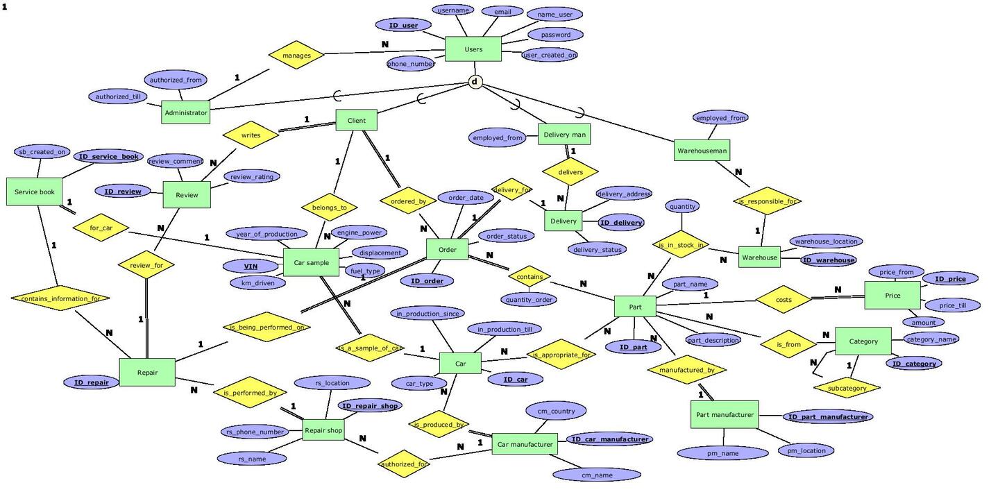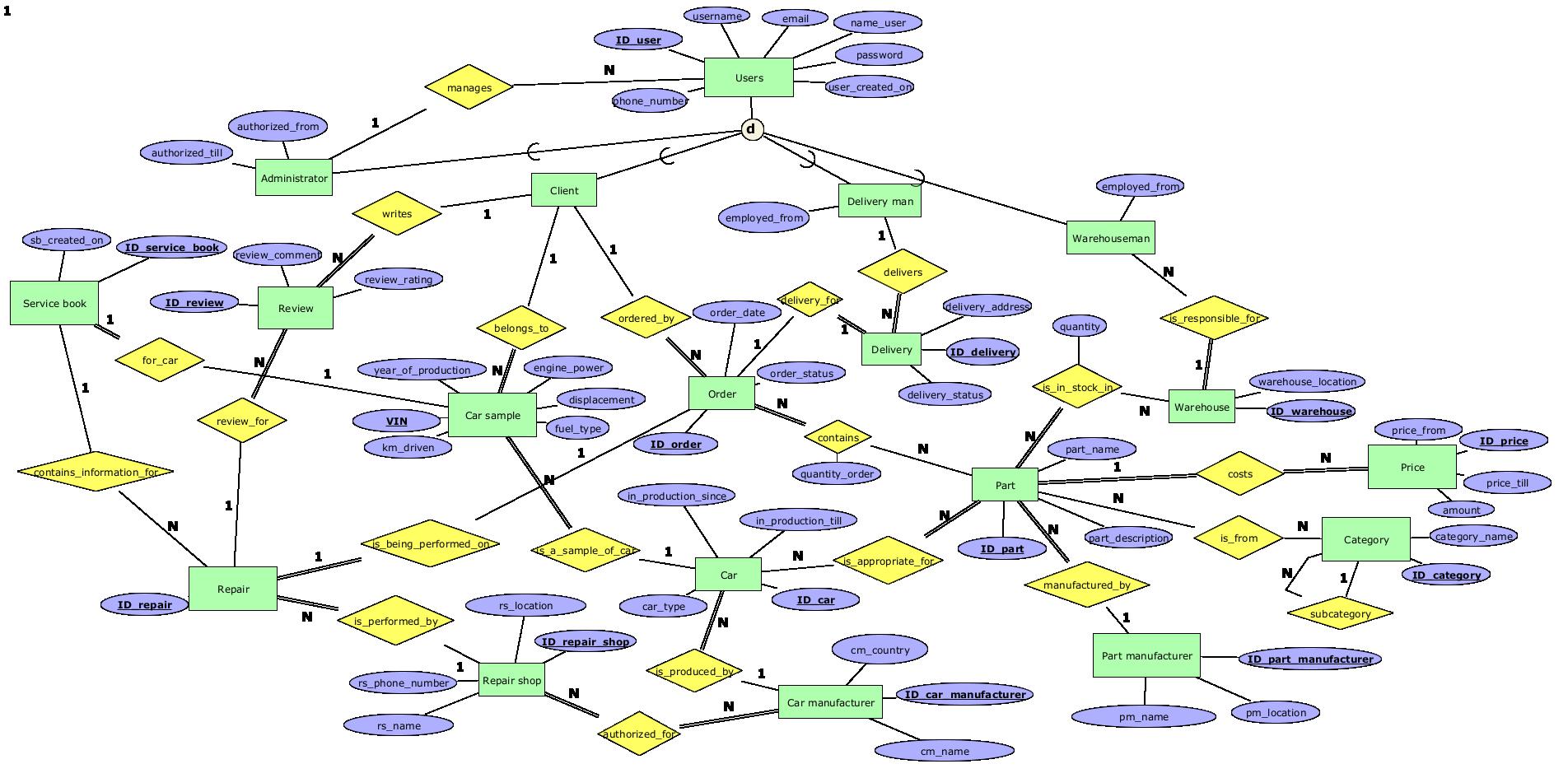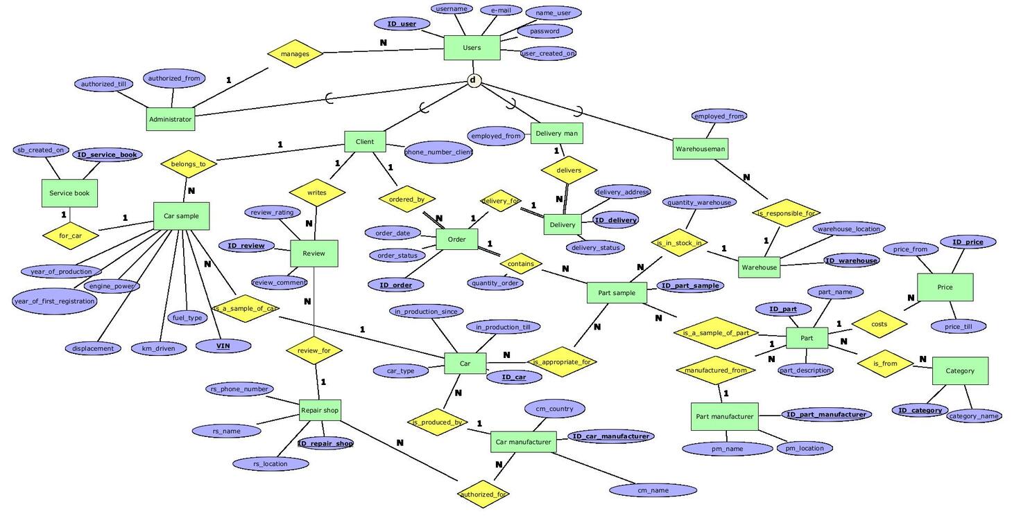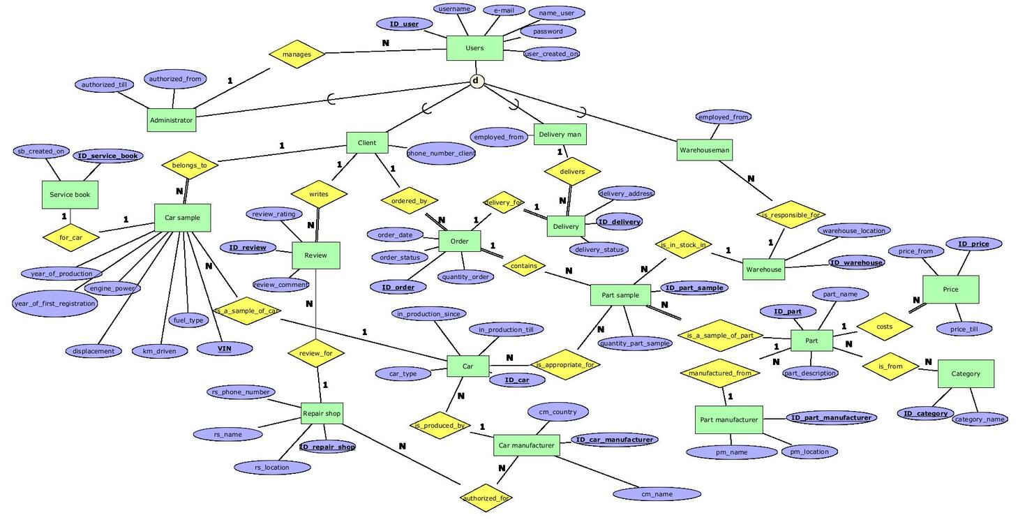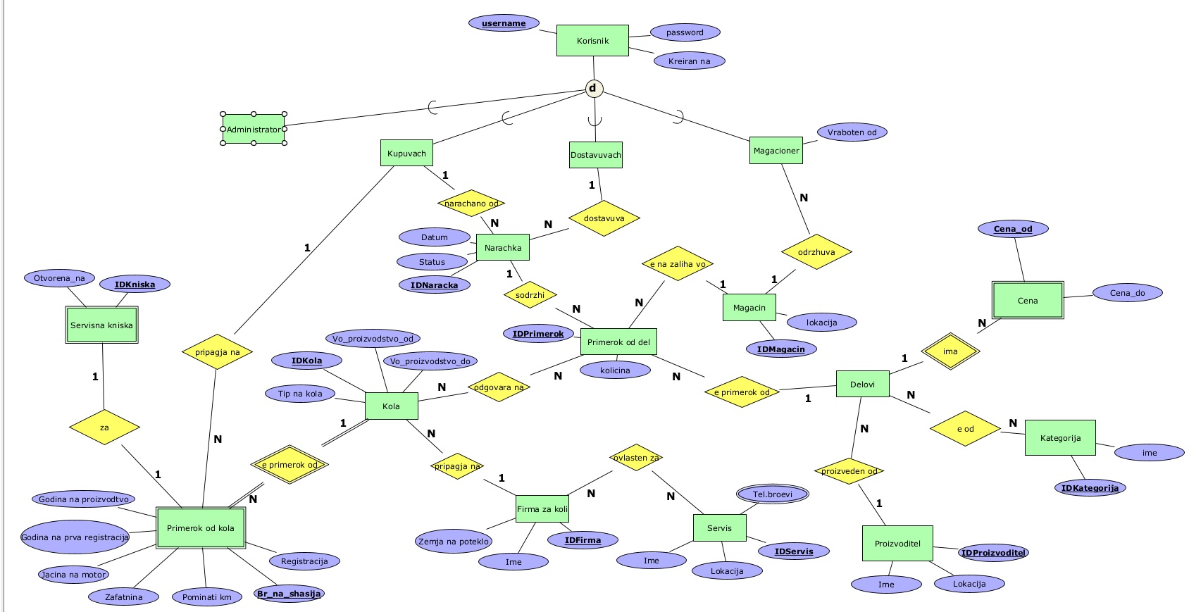 - is_appropriate_for - N:N релација помеѓу Part и Car каде што се чува за кои коли одговараат деловите и кои делови одговараат за некоја кола
