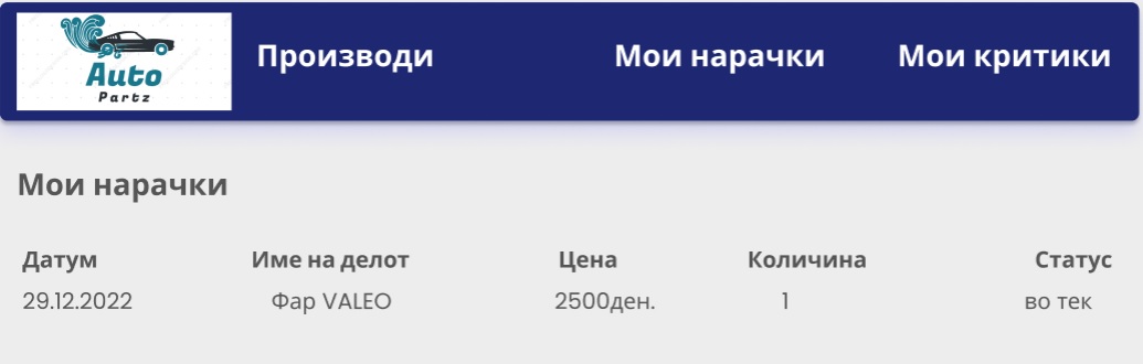 По клик на копчето Мои нарачки,на корисникот му се прикажуваат неговите поминати и сегашни нарачки заедно со нивните детали