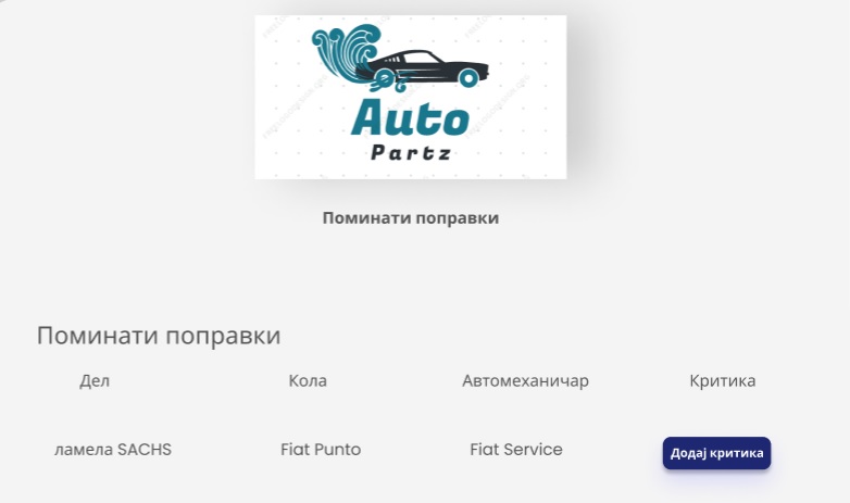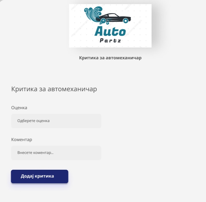 По клик на копчето Додај критика, корисникот треба да внесе оценка за автомеханичарот, а доколку сака може да остави и дополнителен коментар.