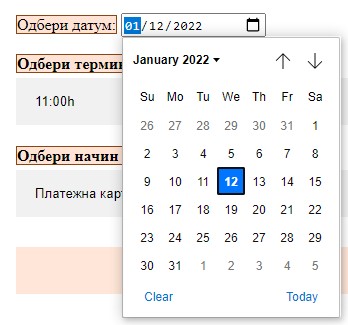 Чекор3: Клиентот одбира датум.