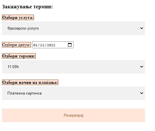 - Клиентот прави резервација на термин за услуга