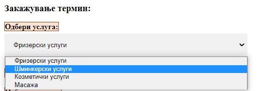 Чекор2: Клиентот ја одбира посакуваната услуга.