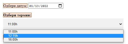 Чекор4: Се прикажуваат слободните термини за погоре селектираниот датум.