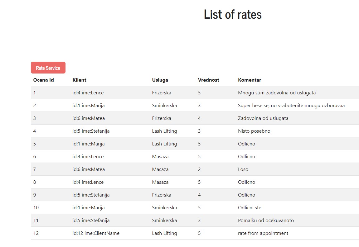 При листањето на сервисите може да се забележат две копчиња кои се листа на оценки и оцени сам. Се прикажуваат сите рејтинзи на сервисите за клиентот да може полесно да се одлучи што сака да прави во салонот врз база на тие коментари. Исто така може и самиот тој да гласа за одреден сервис за кој мисли дека може да напише коментар кој ќе биде од помош.