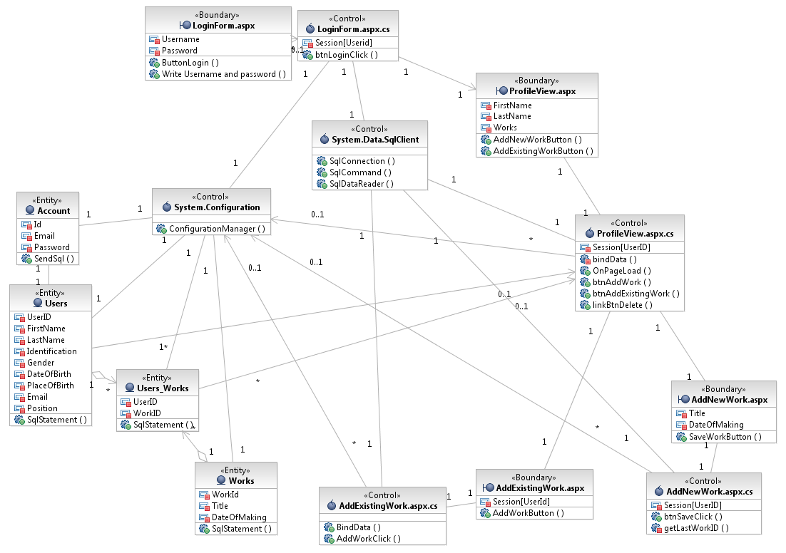 Приказ на дијаграмите за детализиран модел кој е до имплементација за корисничкиот случај Уредување на сопствен профил