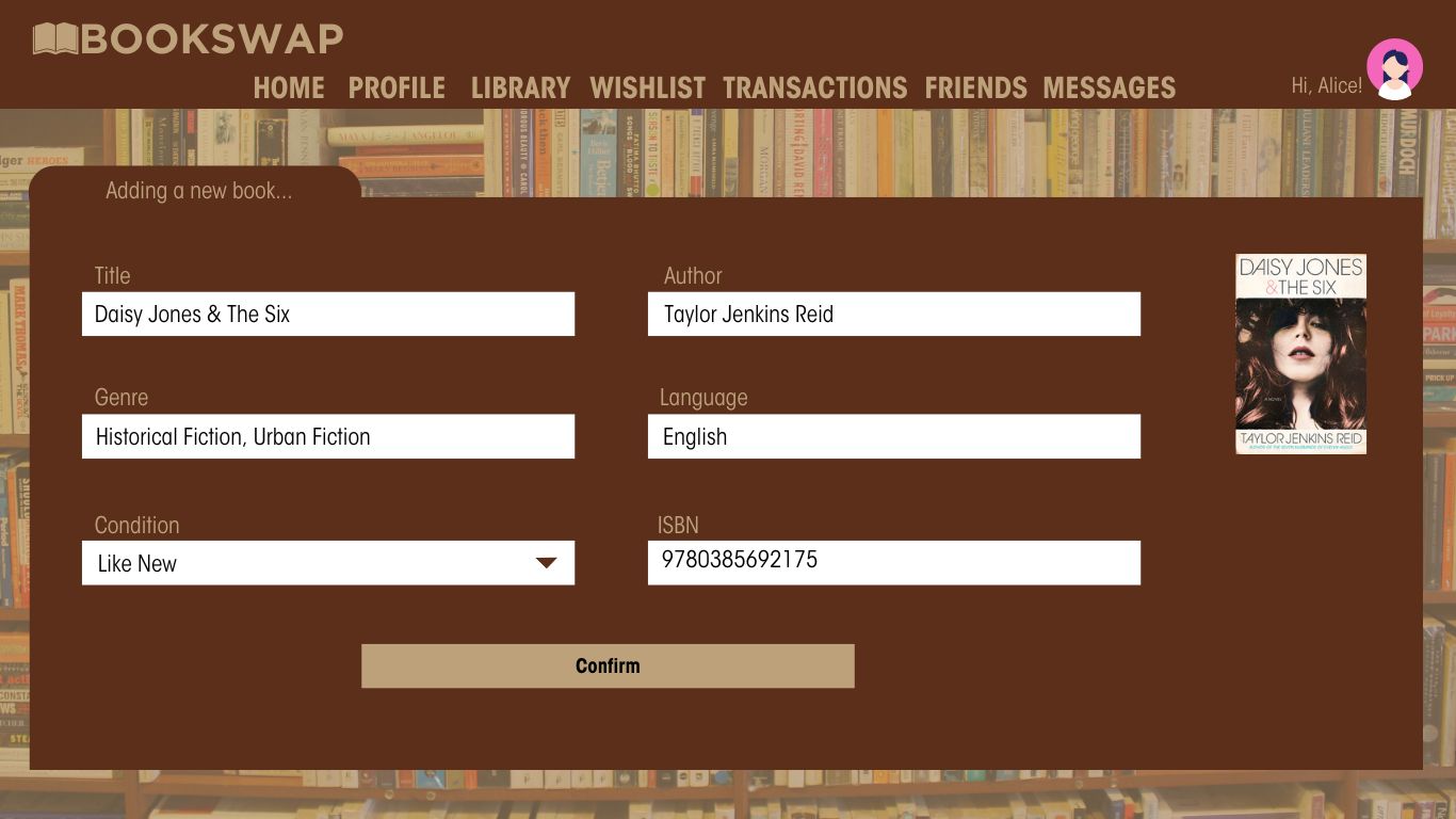 - Со клик на копчето “Confirm”, книгата успешно се додава во листата на книги.