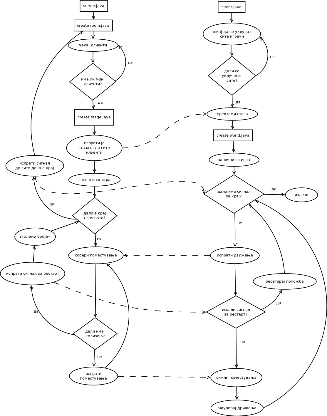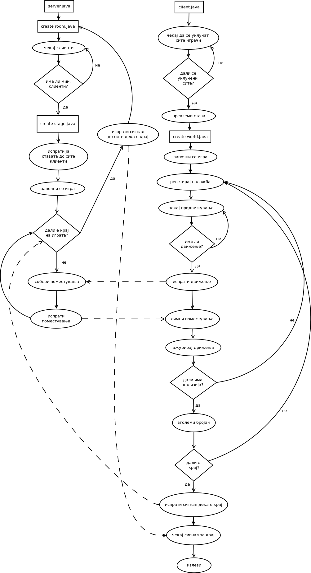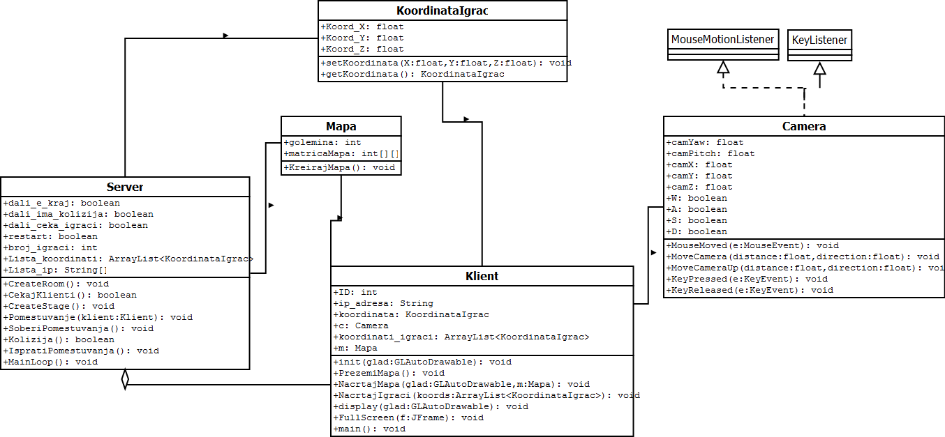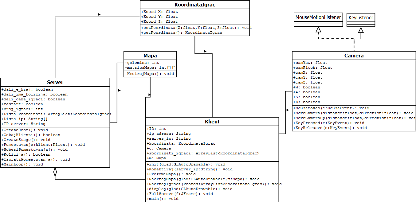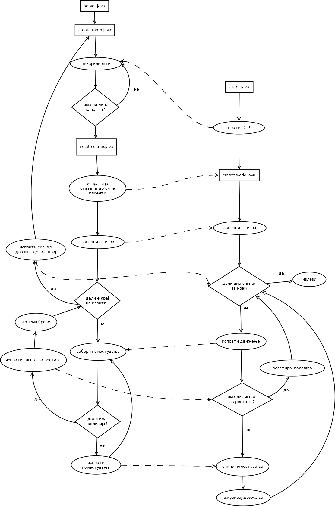 Првичната архитектура на системот ќе биде клиент-сервер архитектура. Сите играчи, во случајов клиенти се приклучени на една сентрална машина наречена сервер. Серверот е одговорен за сите важни одлуки, управување со состојбите и праќање информации до секој посебен клиент. Во случајот на “Брканица” серверот се грижи за собирање на моменталните координати на секој од играчите и праќање на истите со секој од клиентите. Како резултат на сето ова серверот станува клучна точка во пропустниот опсег и пресметките. Серверот мора да праќа и прима податоци до N независни текови.