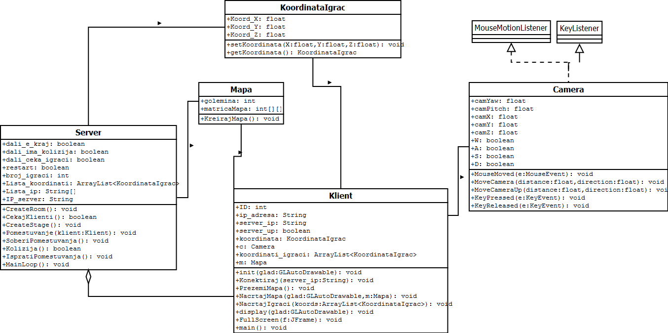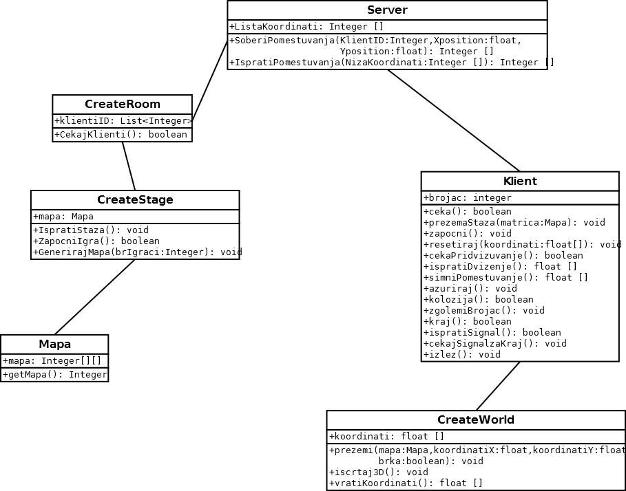 Архитектурата ќе биде дво-слојна, бидејќе нема да има позадинска база на податоци. Целата логика како избирање мапа, тимови и др, ќе биде извршувана во апликацискиот слој.
