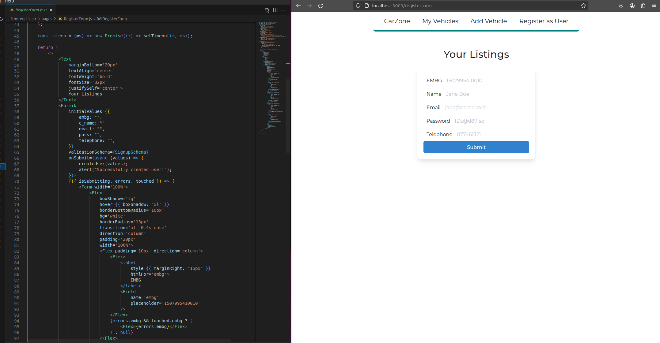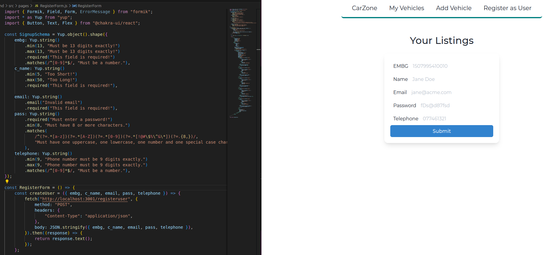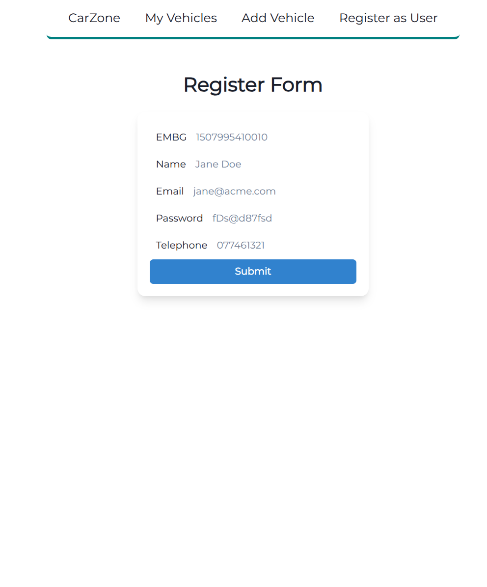 Ова е формата за регистрација на нов корисник, која што по успешно внесување и валидација на полињата креира корисник во датабазата.