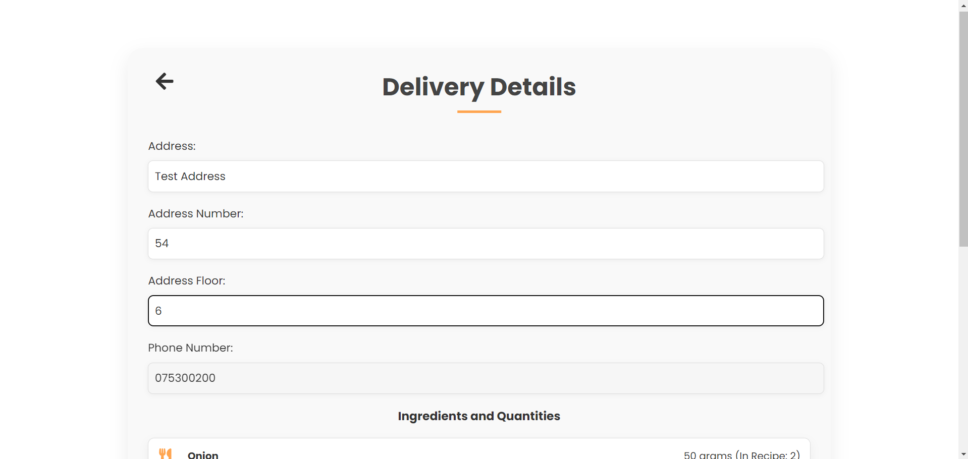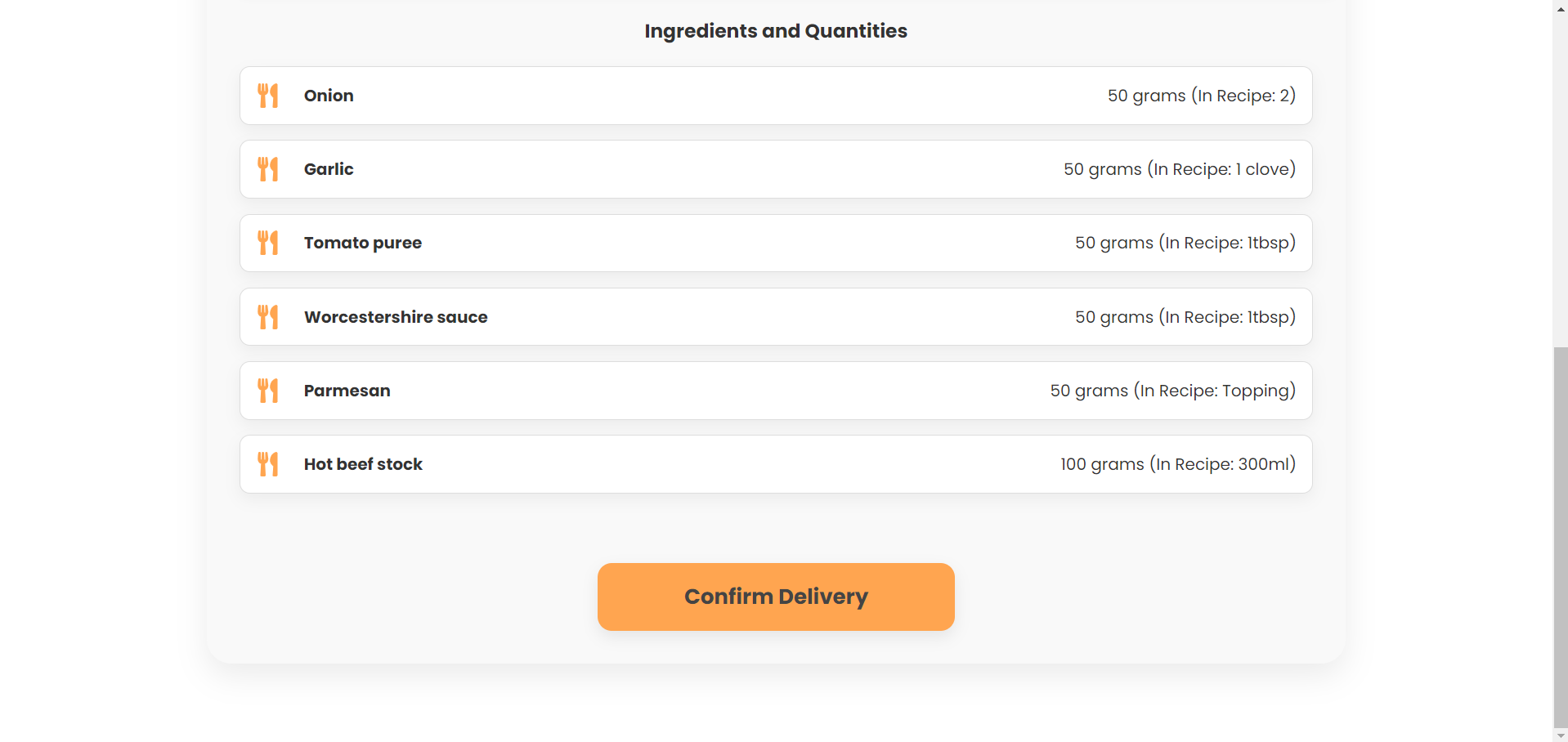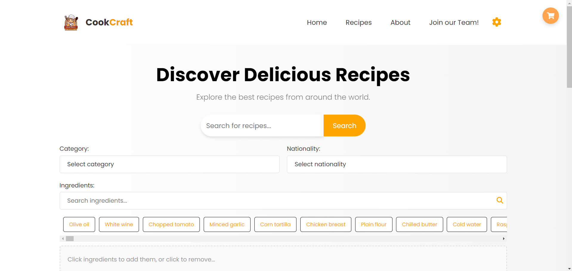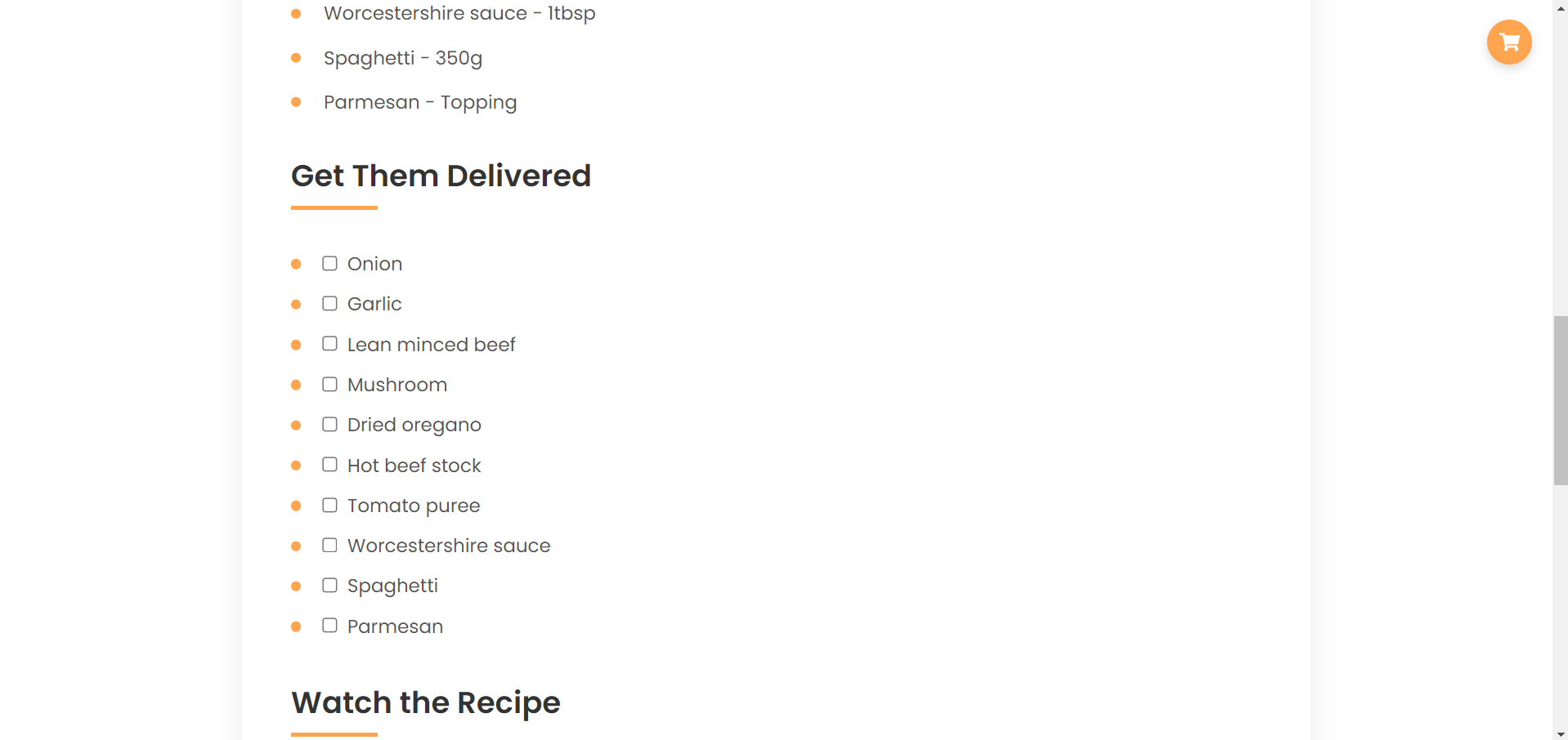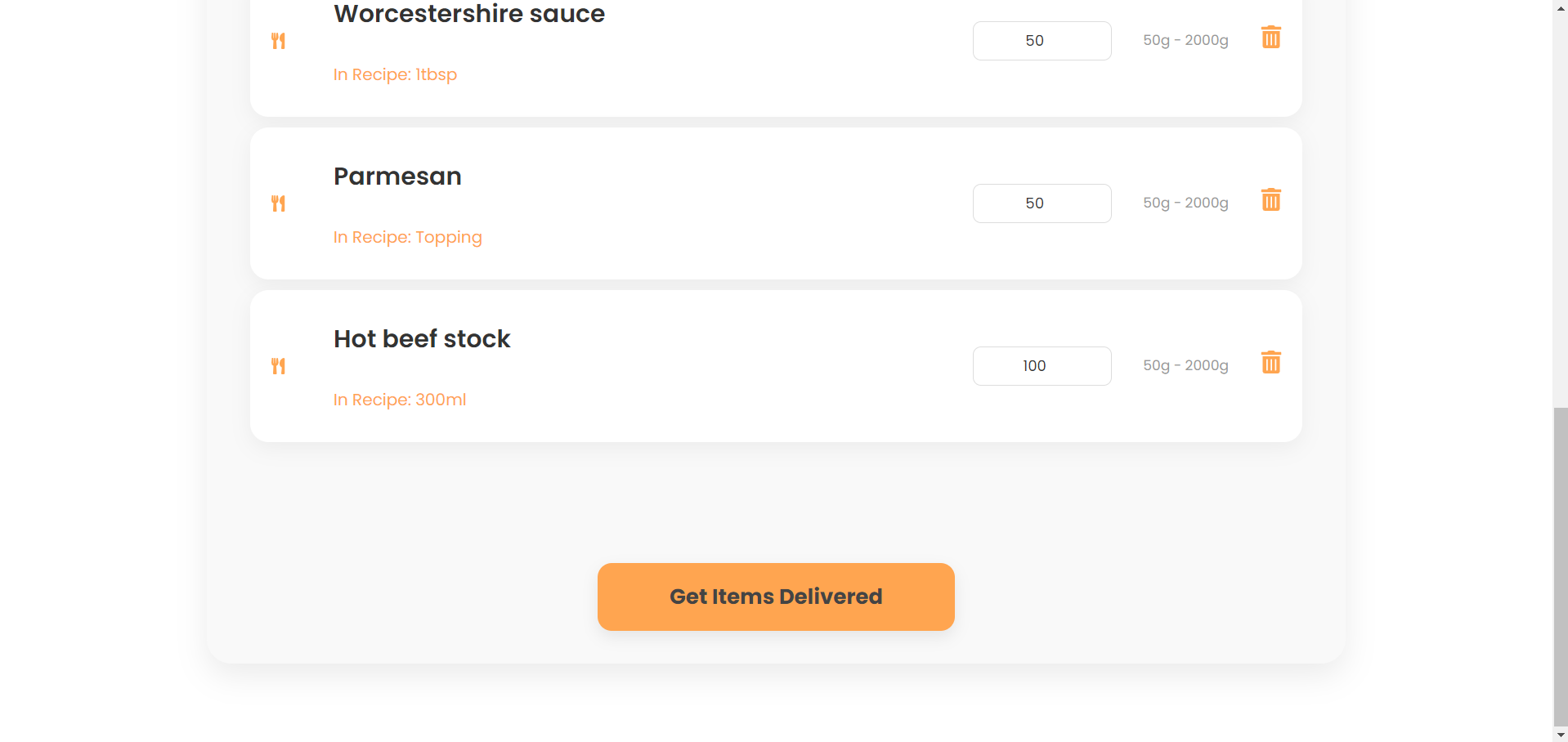 Корисникот го селектира одредениот рецепт и се навигира кон секцијата за намирници и го клика копчето за нарачка или кошничката