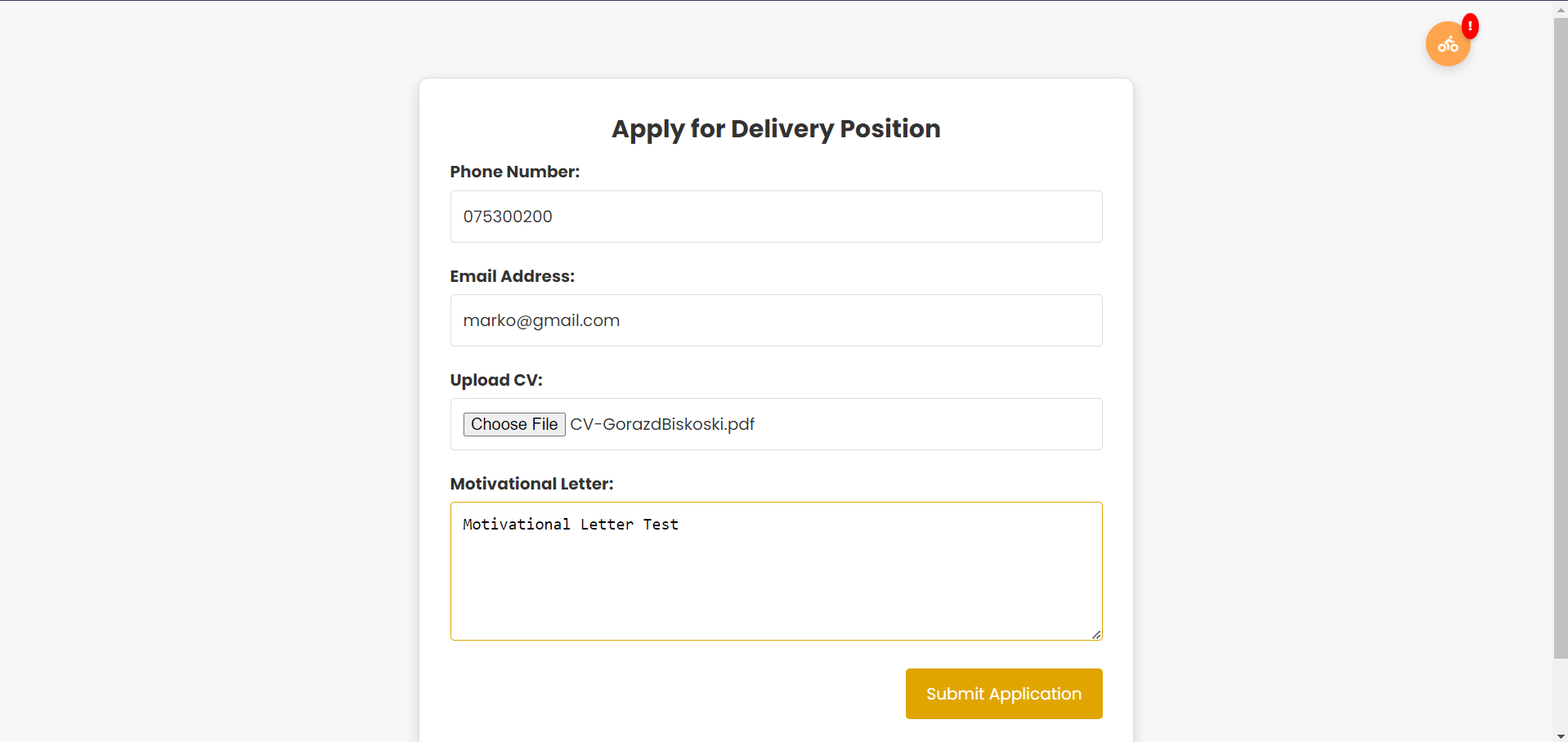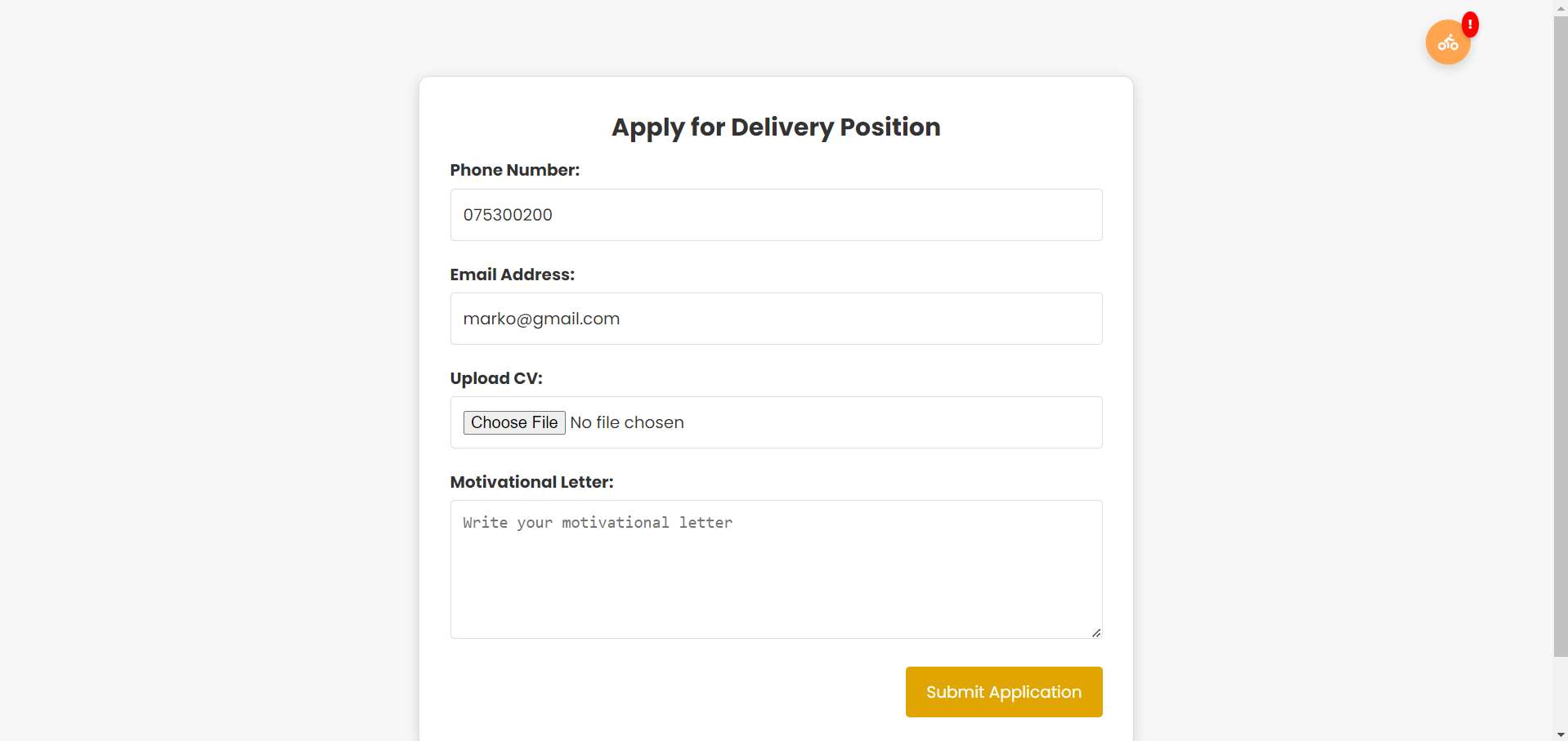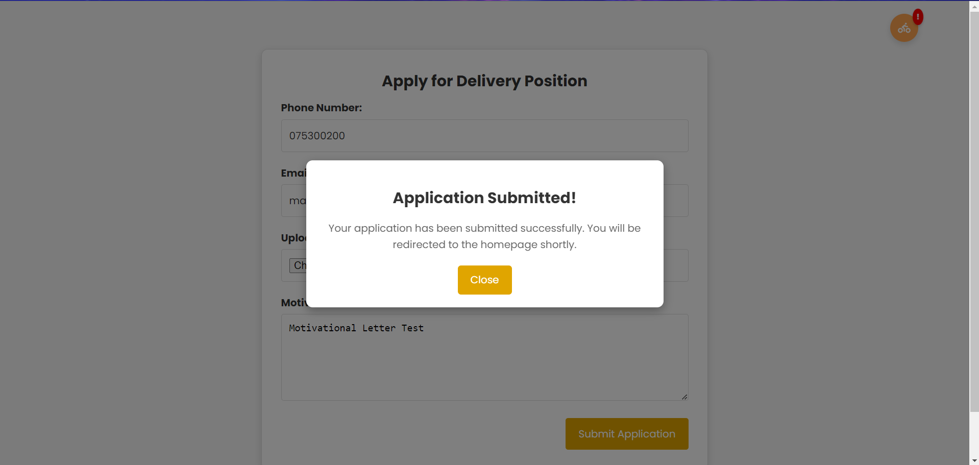 Тој е пренасочен кон иницијалната страница за аплицирање како доставувач.