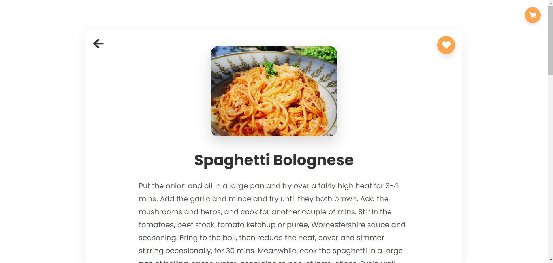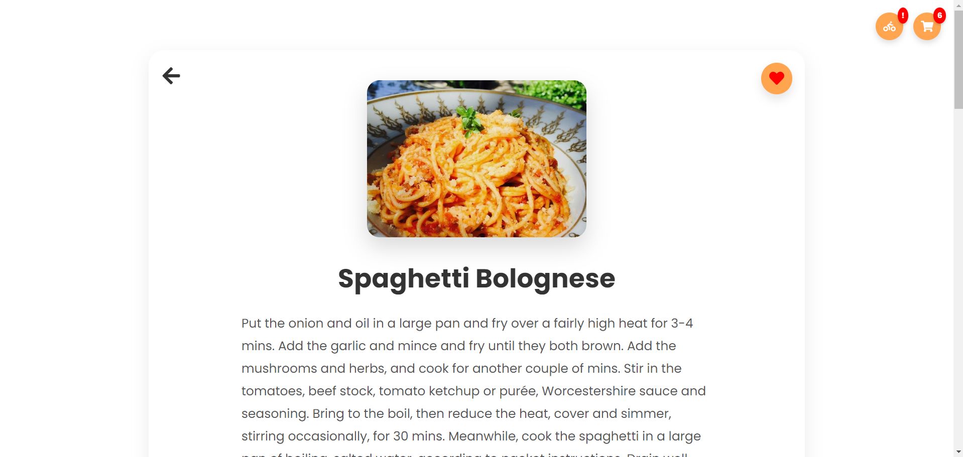 Корисникот го кликнува копчето во облик на срце каде што му се менува бојата на срцето како индикатор дека корисникот го додал рецептот во листата на омилени рецепти