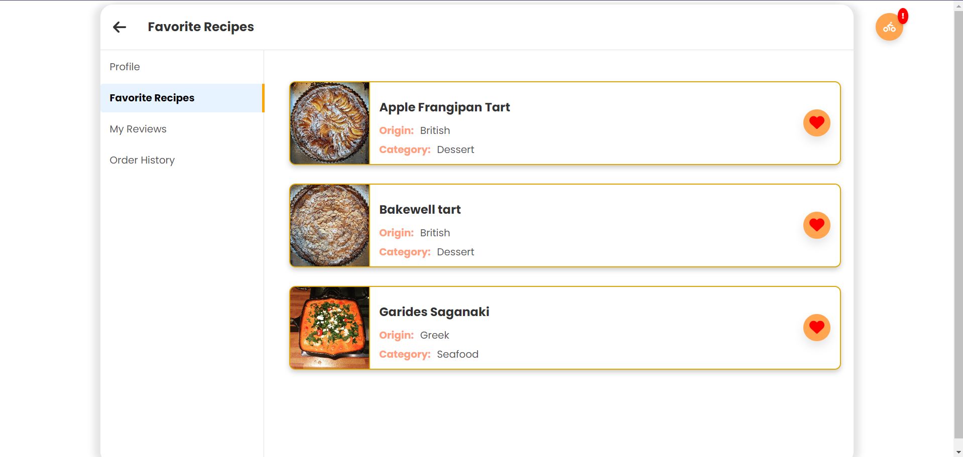 Тој е пренасочен кон страницата каде што му се излистуваат сите рецепти кои тој ги додал во листата на омилени рецепти.