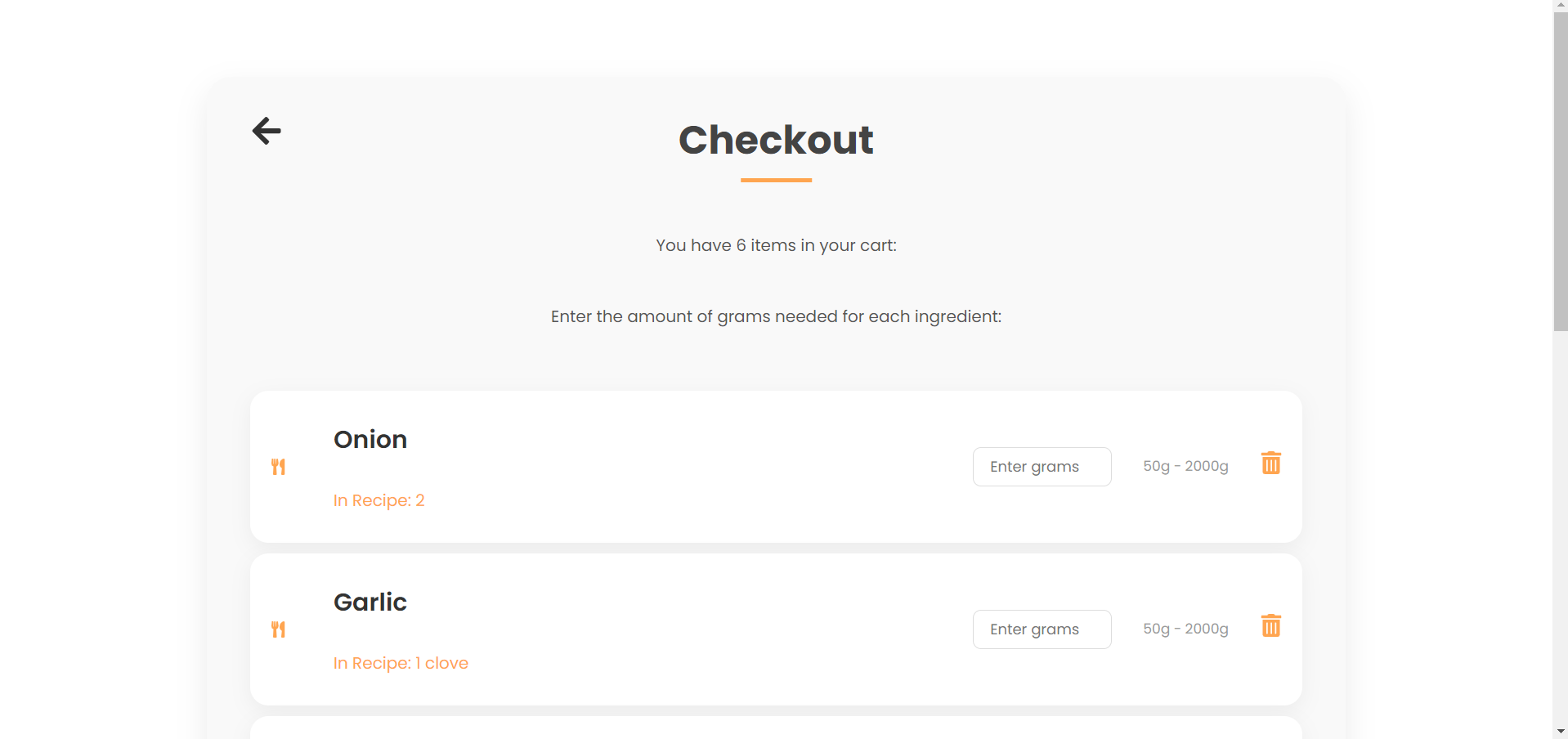 Корисникот е пренасочен кон страница за одредување на грамажа на секој продукт