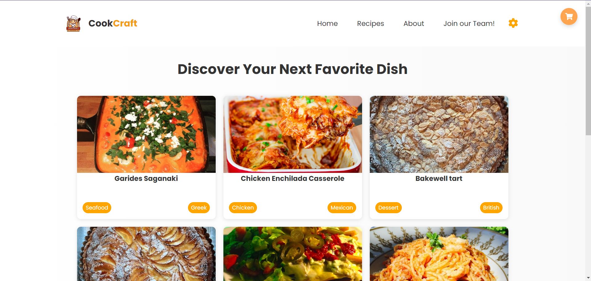 Корисникот го кликнува копчето за листање на рецепти којшто се наоѓа во nav bar секцијата од повеќето страници