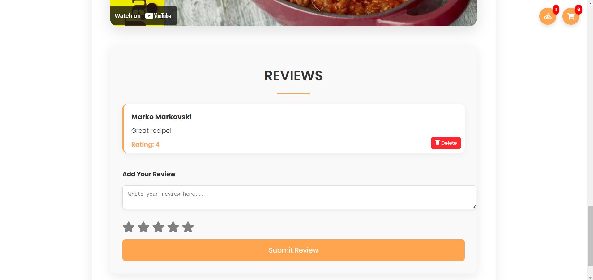 Корисникот се навигира кон долнатиот дел од страната за рецептот и го пишува својот коментар и рејтинг.