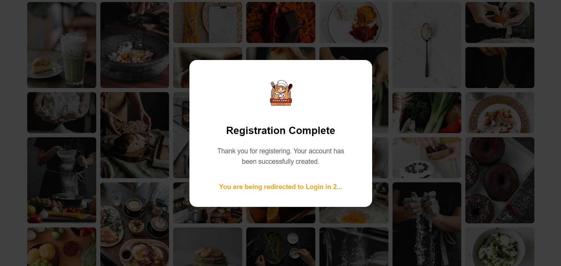 При успешна регистрација на корисникот се појавува модален прозорец кој што му соопштува на корисникот дека креацијата е успешна.