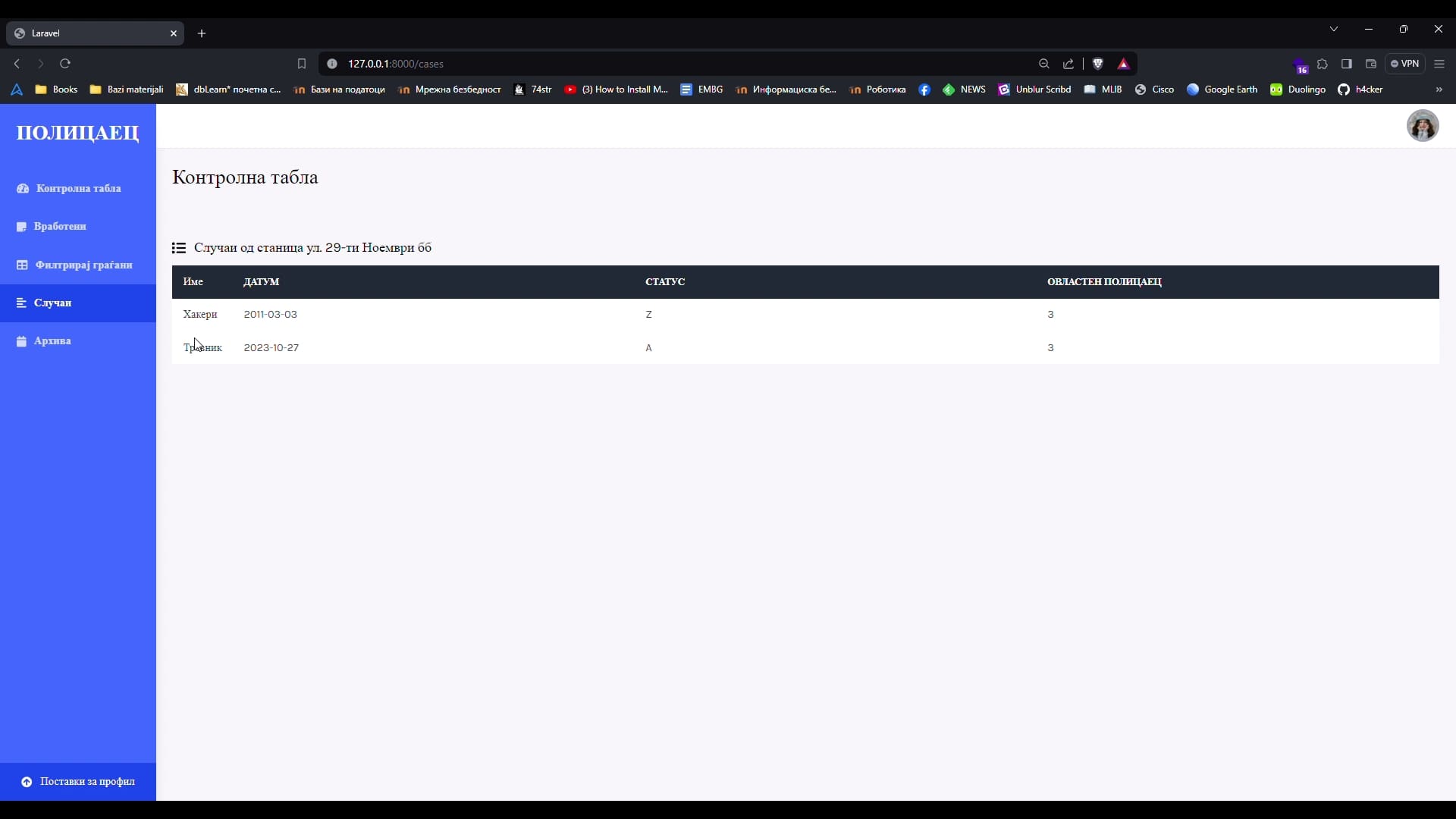 - Откако ќе се најави треба да ја избере опцијата Случаи од навигациското мени, која што ќе го пренасочи на страната каде се листаат сите случаи.