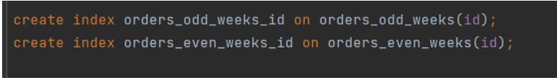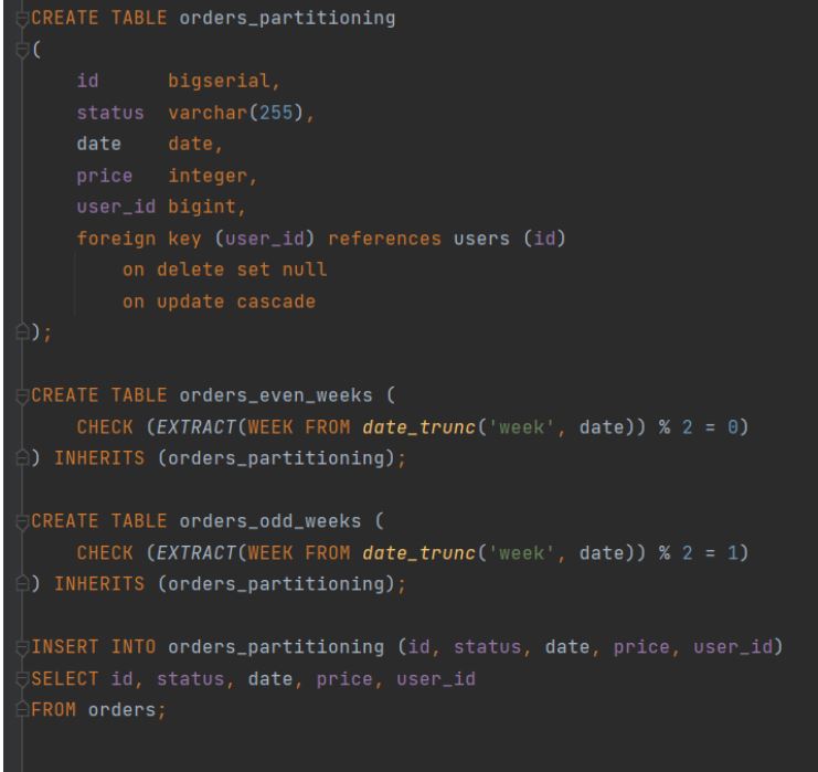 - Креирање на табела за нарачки, две партиции за парни и непарни недели и префрлање на податоци од старата табела за нарачки во новата табела за нарачки.