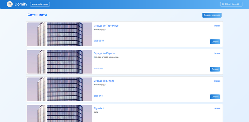 - Корисникот сега ги гледа сите свои имоти и може да кликне на копчето "Додади нов имот" за да внесе нов имот.
