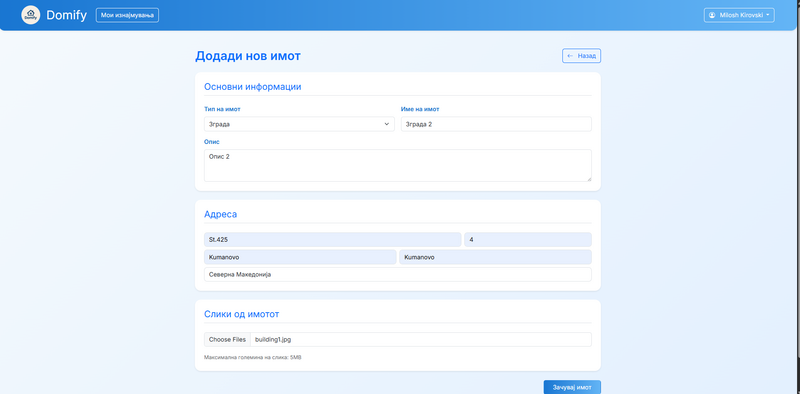 - Сега корисникот може да ги внесе сите основни информации за имотот како име, опис, адреса и слики. Со ова корисникот може да го креира имотот.