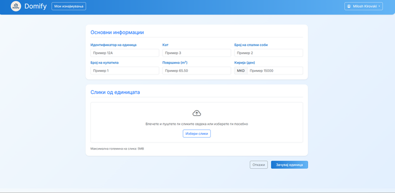 - Корисникот исто така може да додаде единица со клик на "Додади нова единица" или да направи оглас за дадена единица со клик на "Направи оглас".