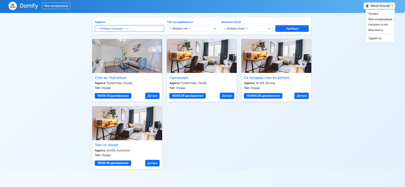 - Најавениот сопственик навигира кон своето име и во паѓачка листа кликнува на копчето "Мои Изнајмувања".