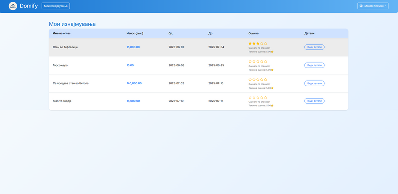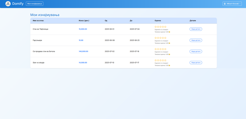 - Сега изнајмувачот се наоѓа на страната која му ги прикажува сите единици кои ги има изнајмено, заедно со 5 ѕвездички до секое изнајмување.