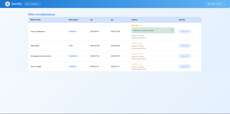 - По внес на број на ѕвезди, автоматски се праќа барање до самиот сервер за ажурирање на оценката за дадениот изнајмувач.