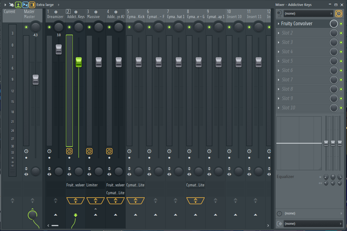 Секој инстурумент беше доделен во посебен миксер патека за да може да се користат ефекти.