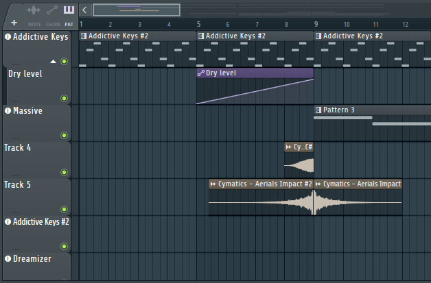Барабанот од Cymatics беше превртен и се користеше како ескалација (build up) во исто време кога ревербот ќе се исклучи.