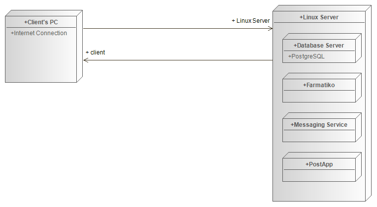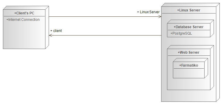Најсоодветна инфраструктура е моделот на клиент-сервер, базата на податоци ќе биде поврзана со централниот сервер кој ќе користи Linux серверски оперативен систем.