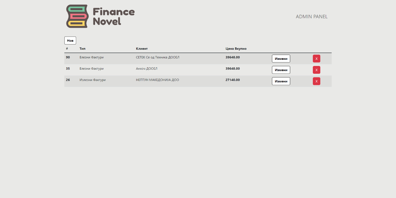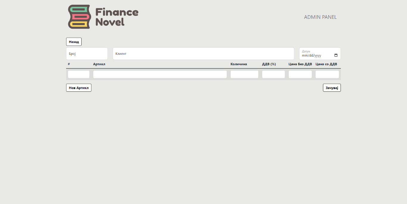 За секој нов артикл што сакаме да биде во фактурата стиснуваме на „Нов Артикл“. Кога ќе ги внесеме сите податоци може да зачуваме факутра со стиснување на „Зачувај“.
